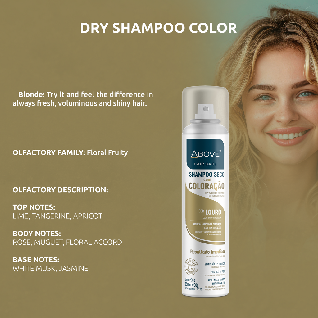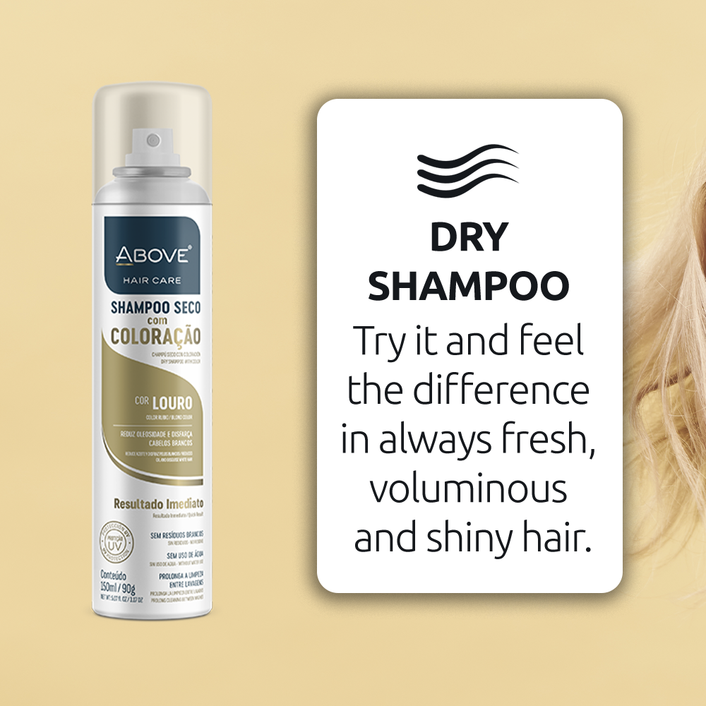 Keep your blonde radiant and fresh anytime! Above Dry Shampoo with Blonde Color is the perfect solution to instantly eliminate oiliness and frizz without water. Its formula with light pigments is designed to blend with light tones, helping to conceal gray hairs and roots without leaving white residue. With UV protection and a 100% vegan composition, this shampoo prolongs cleanliness between washes while providing spectacular shine and immediate softness. Ideal for voluminous, flawless-looking hair all day long!