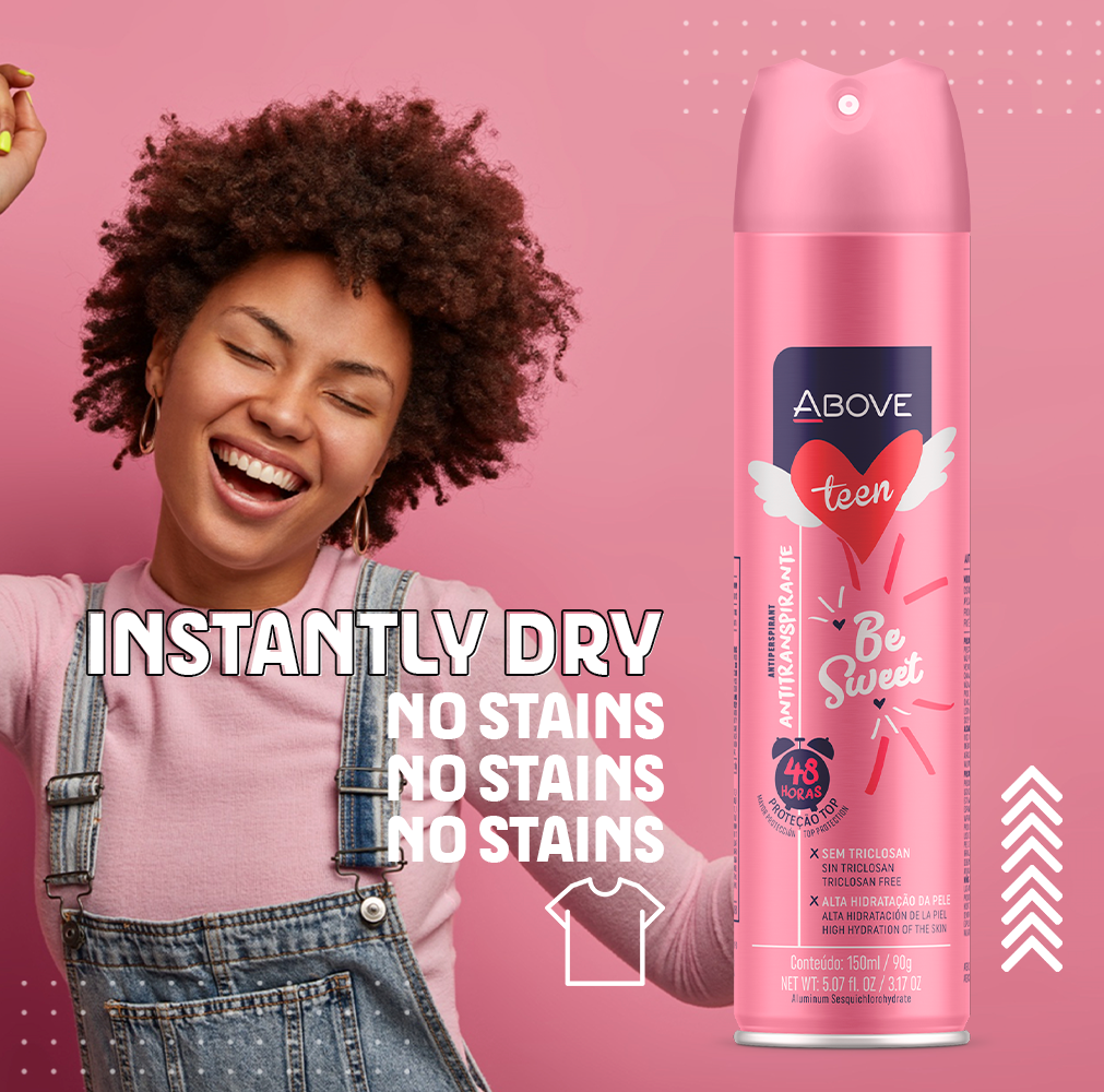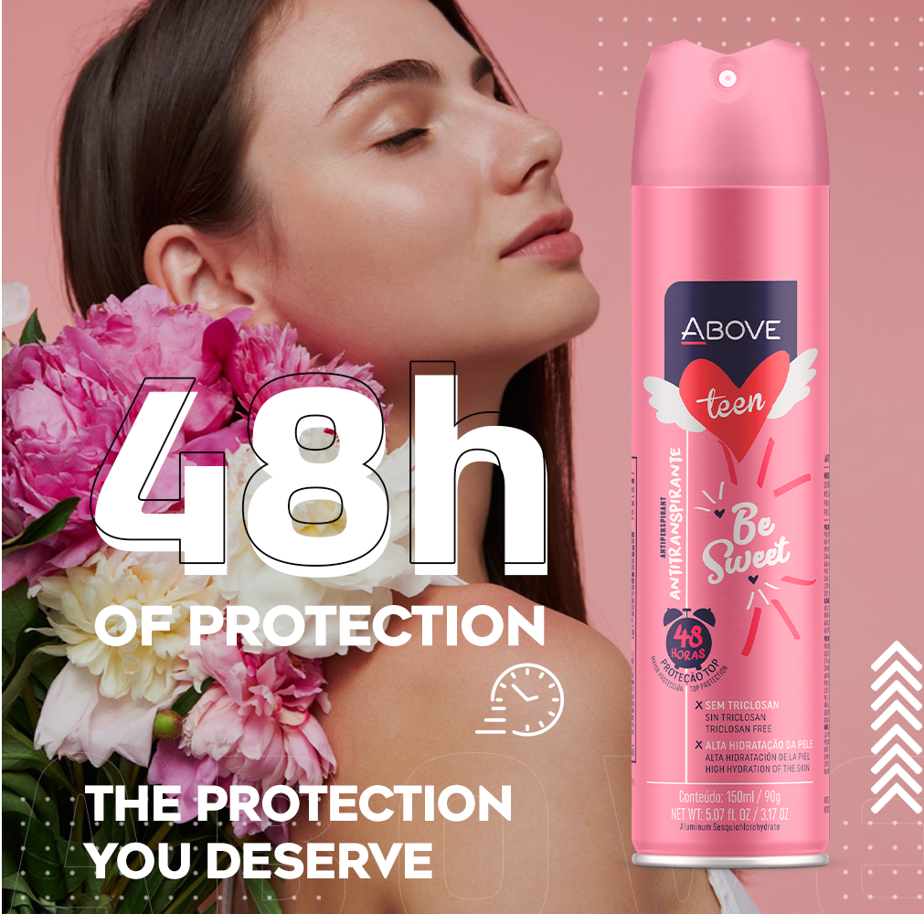 Above Teen Be Sweet antiperspirant has been specially developed for young people, offering effective 48-hour protection against sweat and odor.