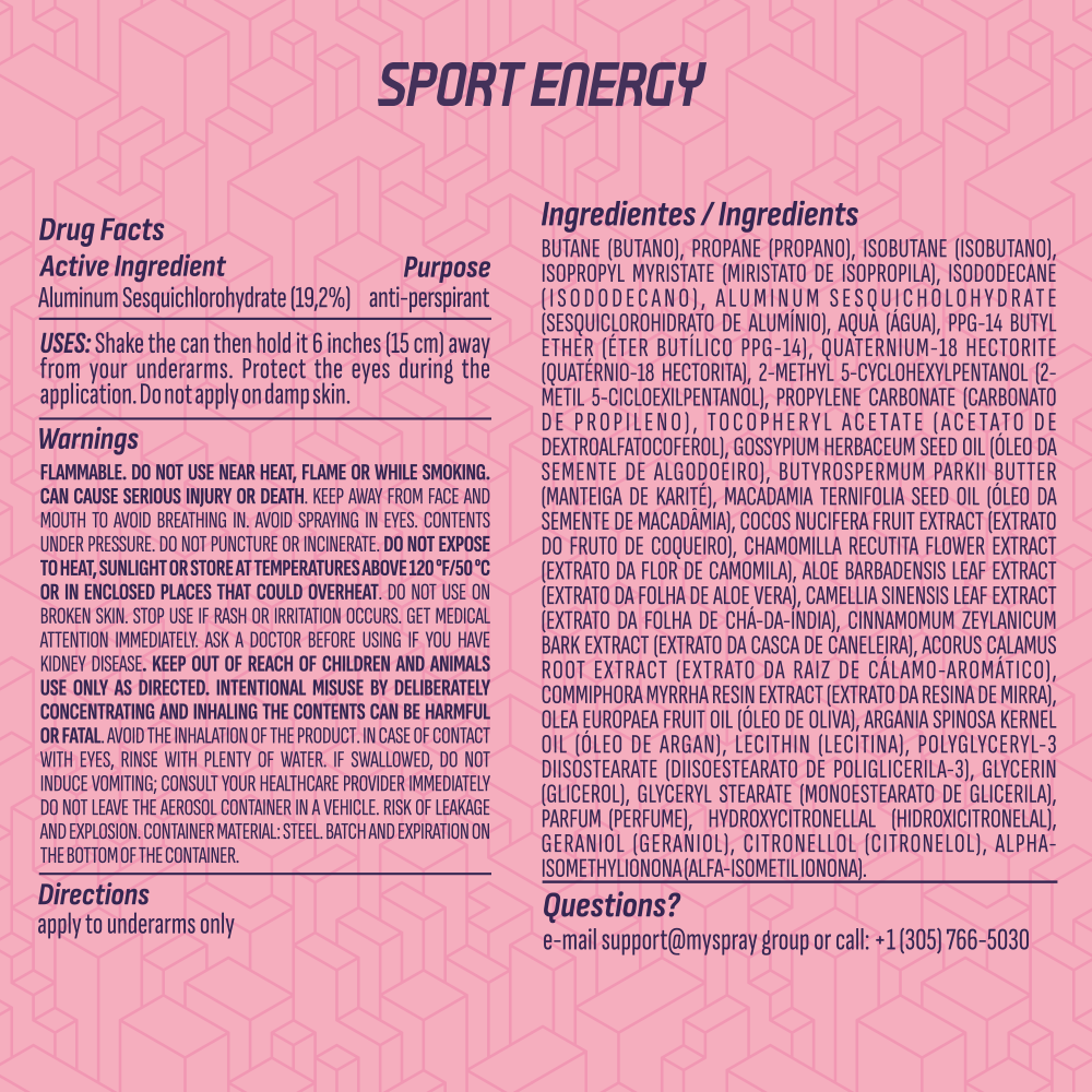 The Above Women Sport Energy Antiperspirant Spray has been developed to offer high performance and effective protection against sweat and odor for up to 72 hours. Its invisible formula provides an immediate sensation of freshness and energy, ideal for active women with a demanding routine. It helps keep skin dry and comfortable all day long, even during physical exertion, without leaving visible residue on clothing. Its application is light and even, ensuring well-being, long-lasting protection, and maximum confidence in every movement.
