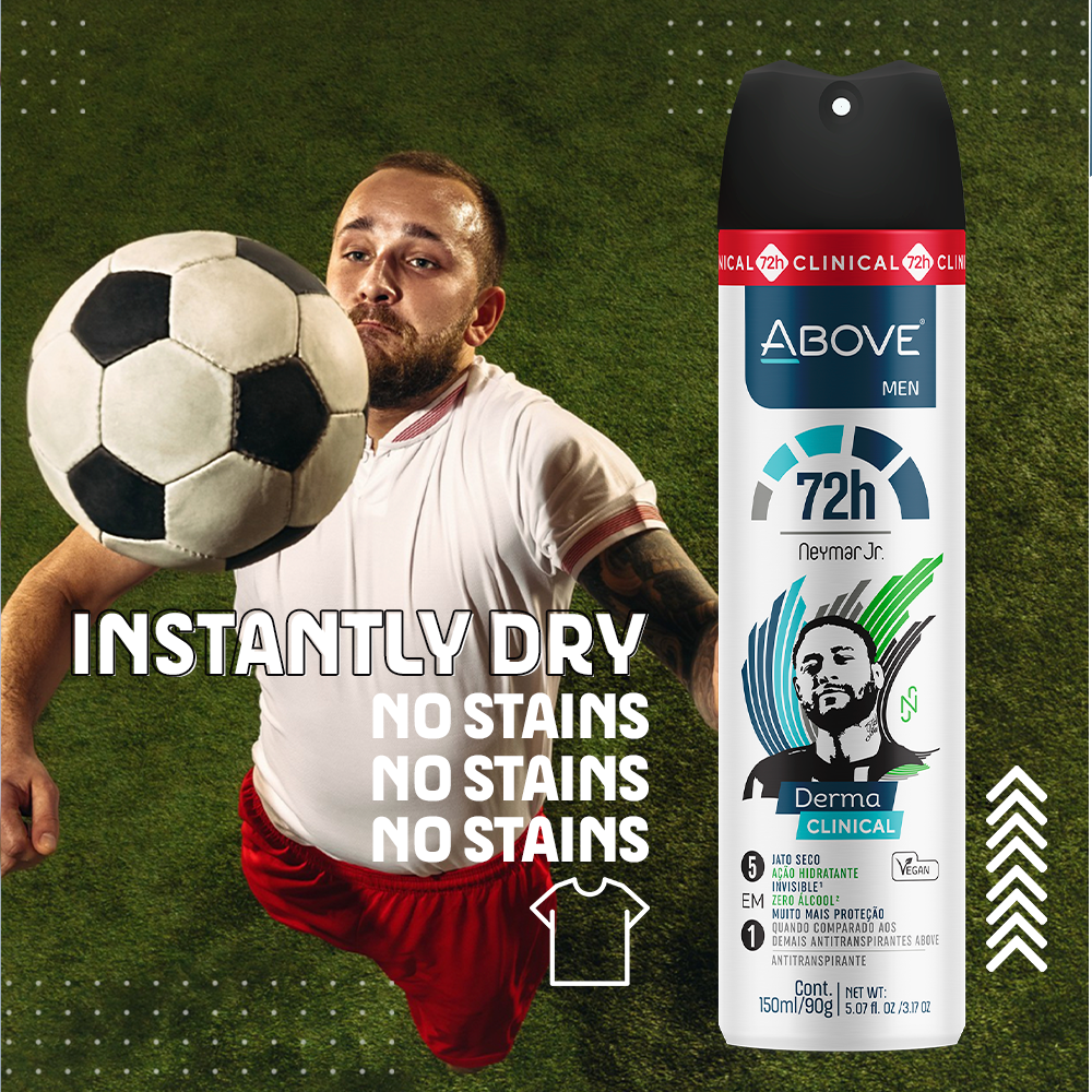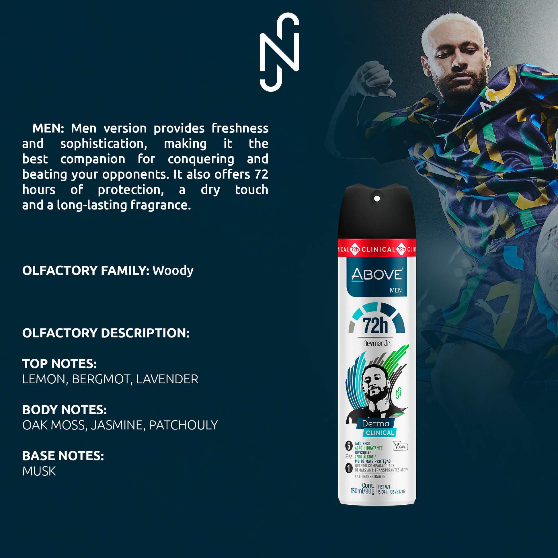 Ideal for men looking for protection with a refined fragrance. Developed with notes of bergamot, night jasmine and tonka bean, the Neymar Jr. Men version provides freshness and sophistication, making it the best companion for conquering and beating your opponents. It also offers 72 hours of protection, a dry touch and a long-lasting fragrance.